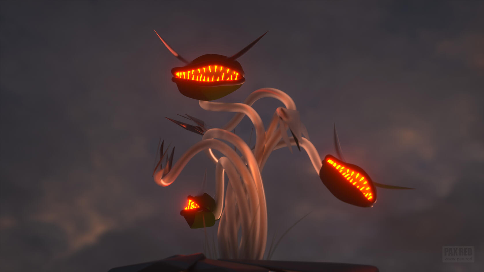 The Ivone flower is very similar to our roses in appearance, but it displays more pastel colors, which have been described as "pastel-rose." The inside of the flower glows with a red light at night during summer months. This glow gives off an illusion that the entire flower is on fire, but it's not... the plant's violent reaction when threatened has led to many fatalities among other creatures of the planet.Ivone is an aggressive plant that has been noted to feed on creatures much larger than itself when needed. It does that by throwing its thorns like a gunpistole then burning the creature into nothing in an instant.