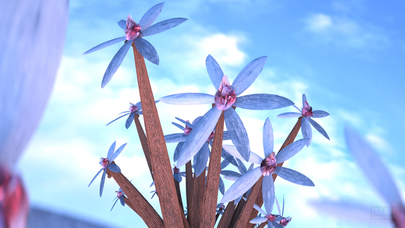 Out of all the plants we've studied, this one is by far the most perplexing. The Blanuwos plant resembles a plant that was arranged on a vase by an unknown hand. While it looks delicate and beautiful, do not be fooled; this plant has immense hidden power. The bottom half, which looks like a vase, is actually part of the plant, and it is able to move objects or itself with its "mind", making it one of the few psychic plants we discovered on the planet.Its stems are adorned with soft, crystal-like fruits, which were proven to help to ease pain and keep a human body healthy.
